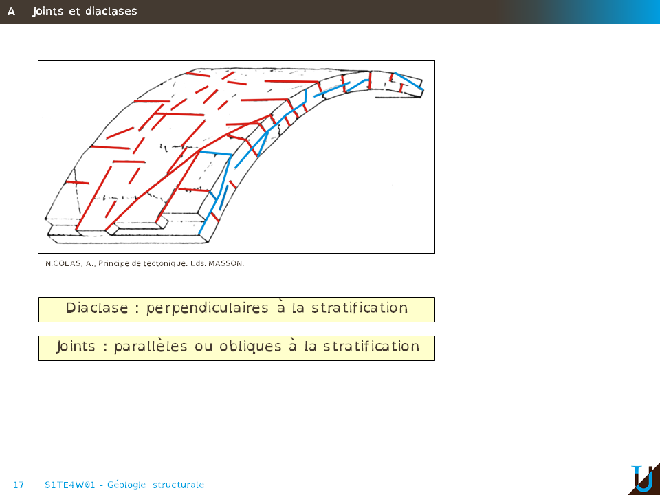 Les diaclases sont plutôt perpendiculaires au plan des couches et les joints plutôt parallèles ou obliques.