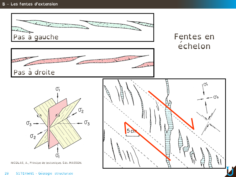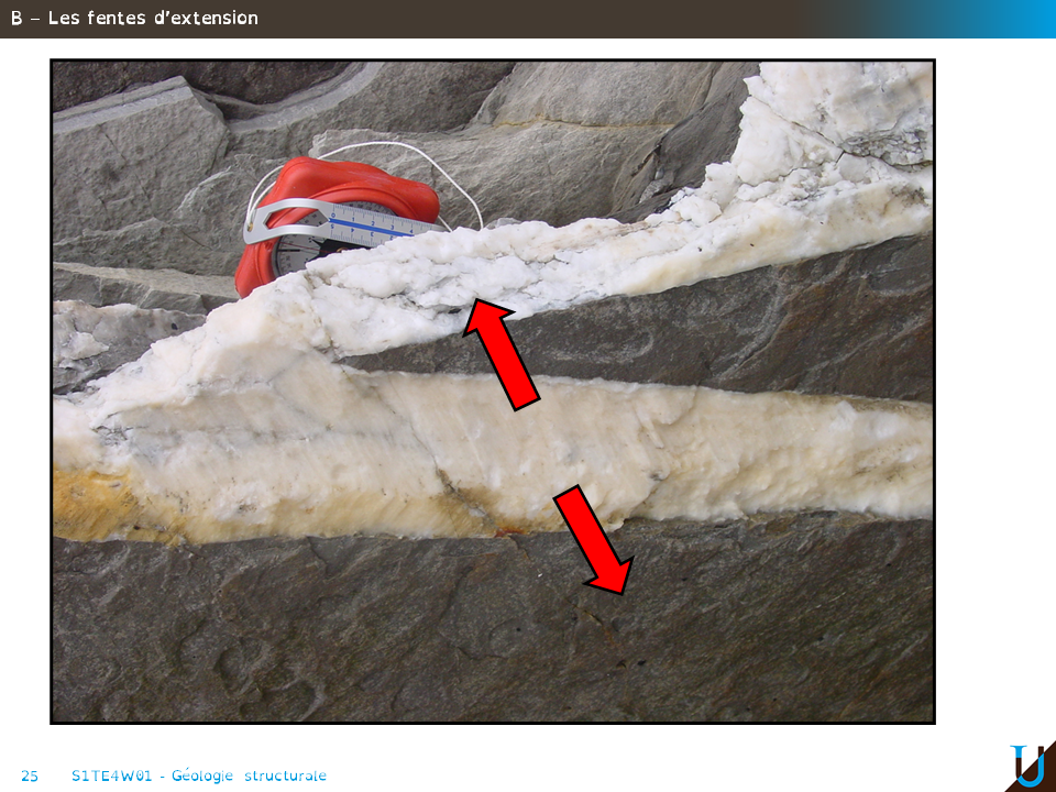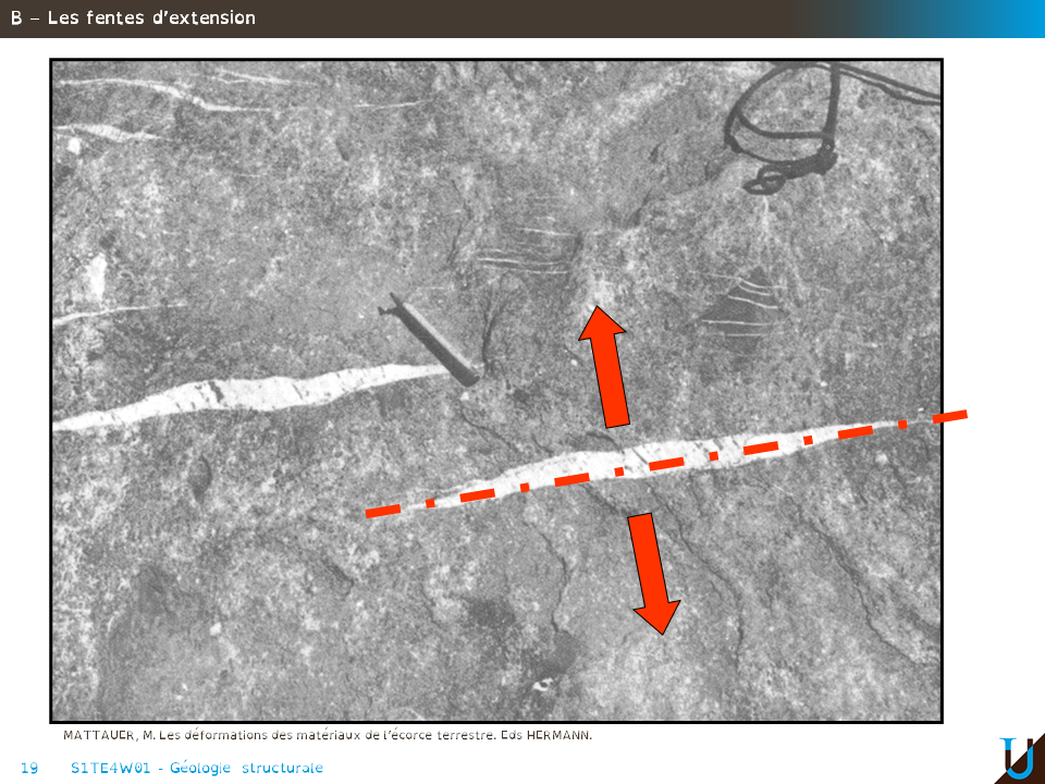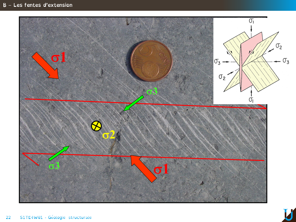 Les fentes d'extension sont un marqueur important de la déformation. Directement à l'affleurement elles permettent assez facilement de retrouver σ1, σ2 et σ3.