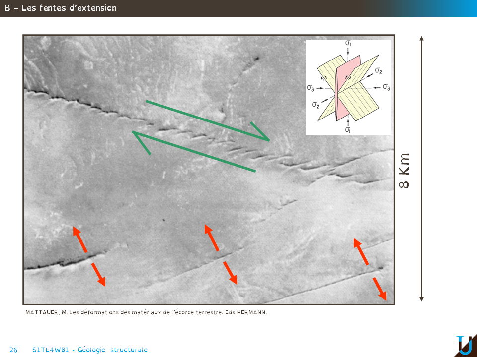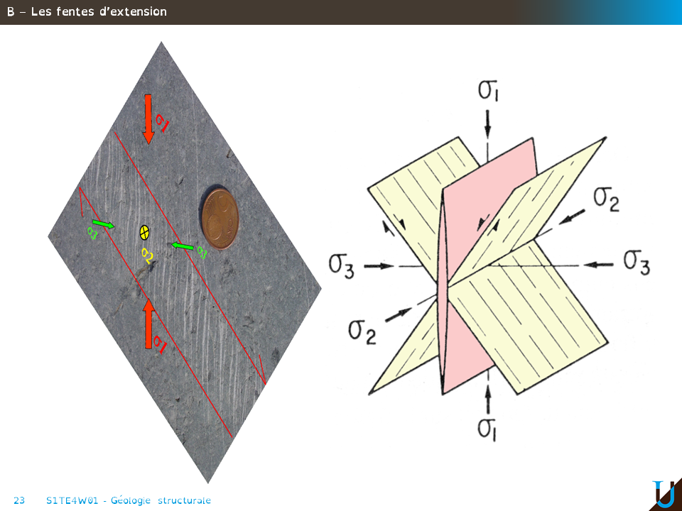 Les fentes d’extension sont parallèles à σ1 et leur ouverture se fait parallèlement à σ3.