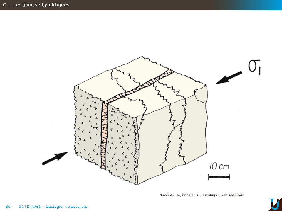 Les colonnettes sont toujours parallèles à la direction de contrainte principale σ1. De ce fait les joints stylistiques sont fréquemment perpendiculaires aux fentes d’extension.