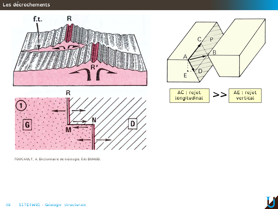 Pour le cas des décrochements, c’est le rejet longitudinal qui est le plus important. Le rejet vertical étant généralement faible.