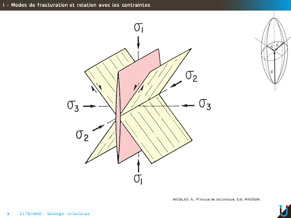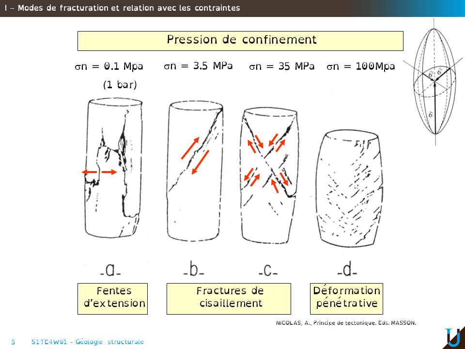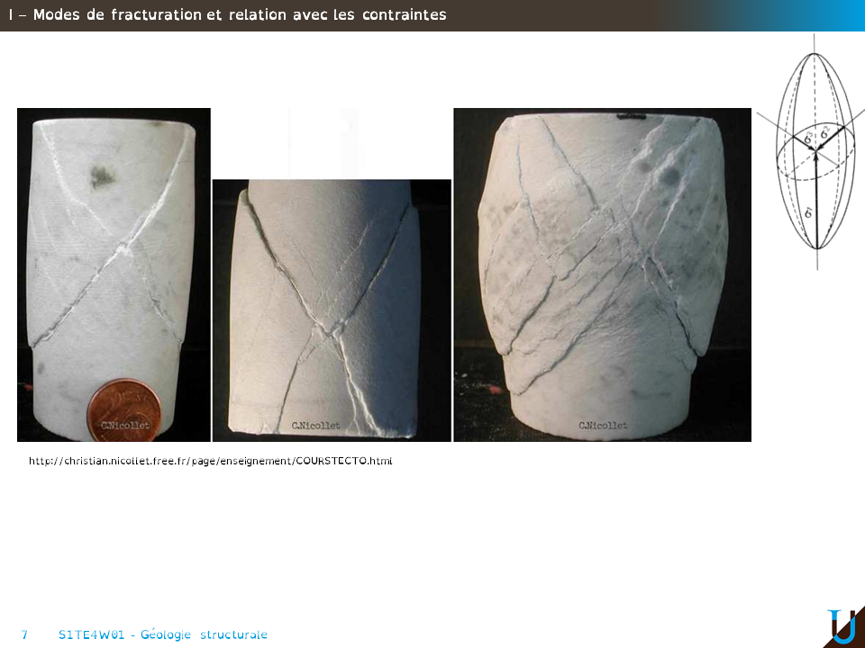 Dans le cas d’une contrainte triaxiale l'orientation des fentes d’extensions et des fractures de cisaillement est logique par rapport aux contraintes. Leur étude va donc permettre de retrouver l’ellipsoïde des contraintes :