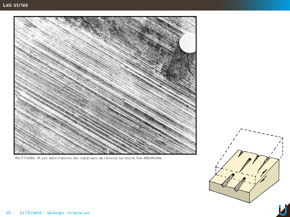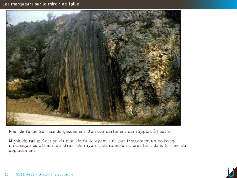 Attention ces stries donnent des indications uniquement sur le dernier déplacement de la faille.