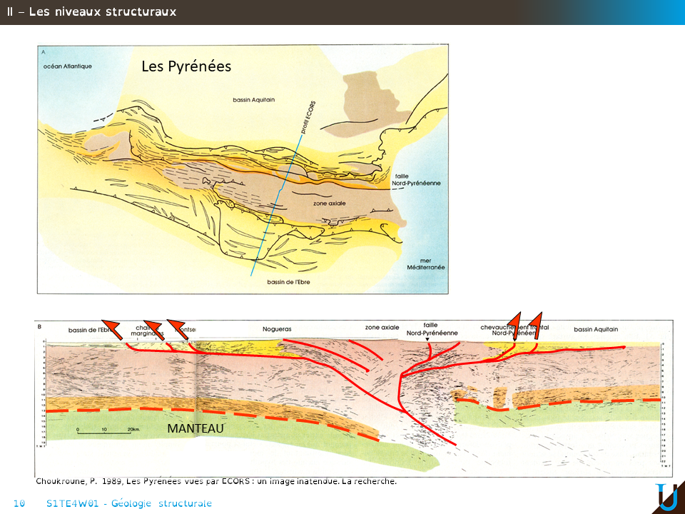 Les zones de charriages et chevauchements Nord et Sud correspondent au niveau structural supérieur.