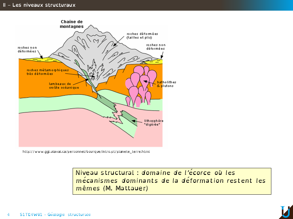 Nous appellerons “niveau structural” les différents domaines de la croûte terrestre (écorce) où les mécanismes dominants de la déformation restent les mêmes.