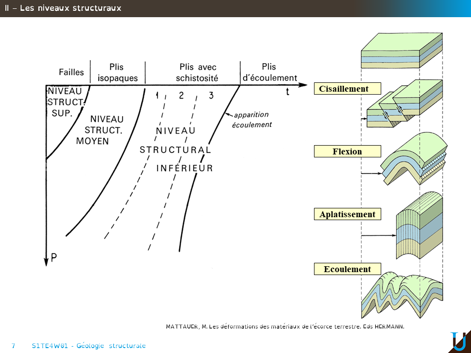 - Lorsque le mécanisme dominant est la flexion, on parle de niveau structural moyen : c'est le domaine des plis isopaques.