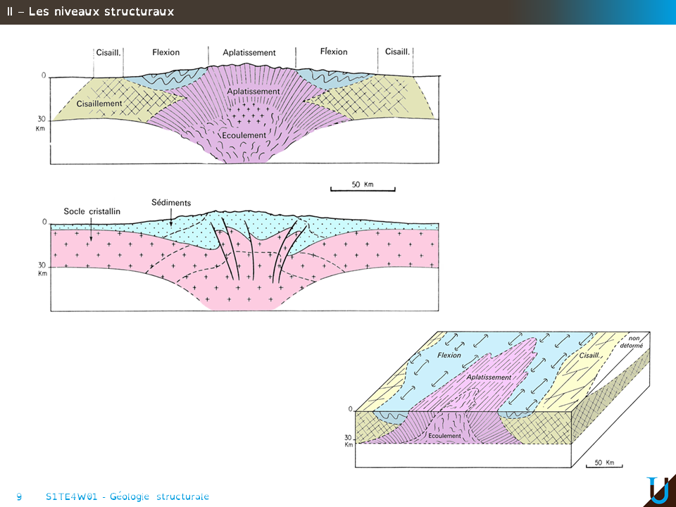 - Le niveau structural supérieur, le domaine du cisaillement.