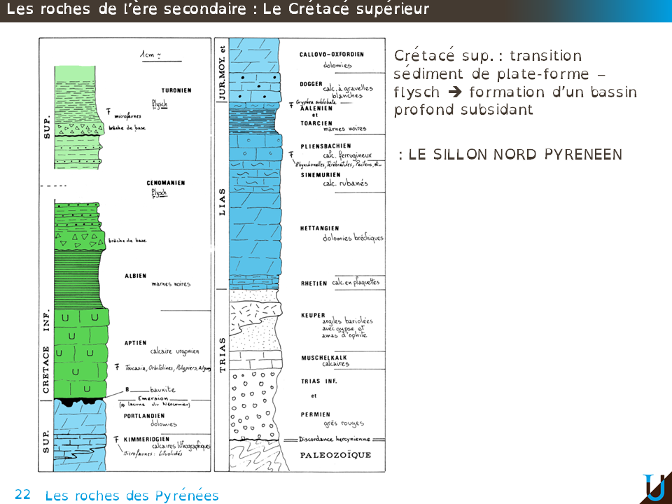 Cette transition sédiment de plateforme ⇒ flysch marque témoigne de la formation d'un bassin profond subsidant à partir du Crétacé moyen, séparant l'Europe de l'Ibérie : le sillon Nord pyrénéen.