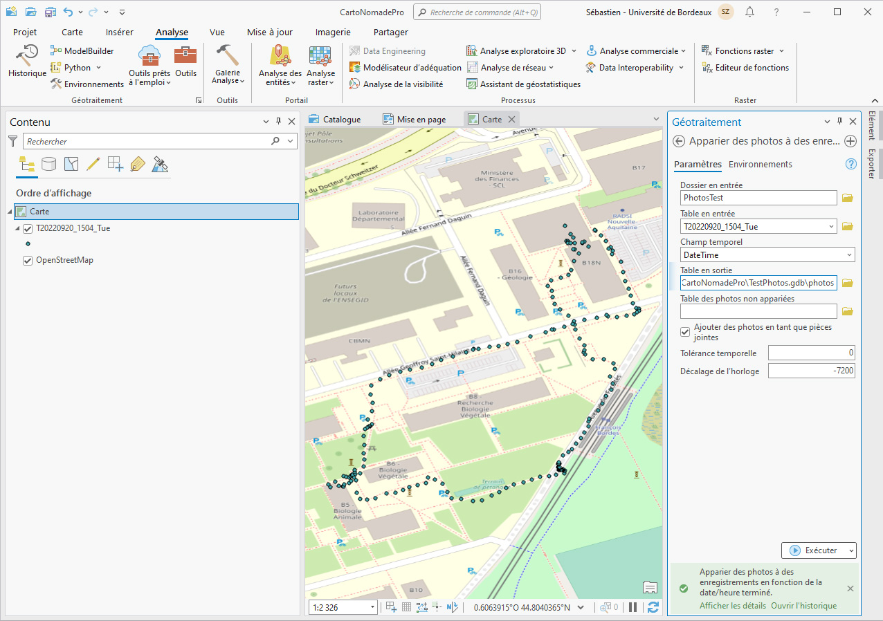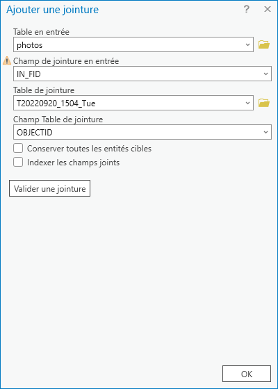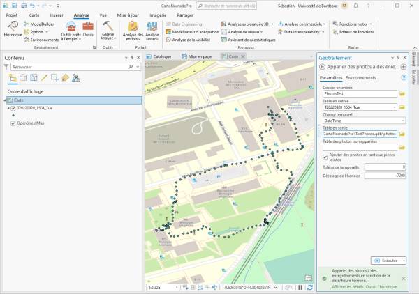 - Utilisez le géotraitement Apparier des photos à des enregistrements en fonction de la date/heure.