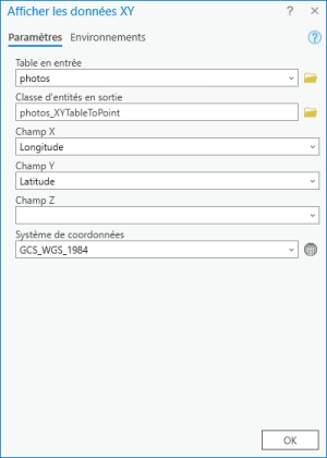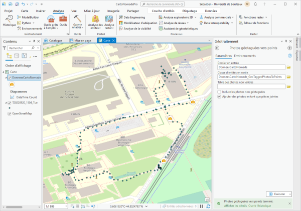 - Utiliser le géotraitement Photo géolocalisées vers points. Si besoin vous avez des photos contenant la localisation GPS dans le répertoire PhotosGeotaguées.