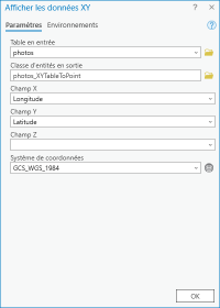 Attention pour que cet outil fonctionne correctement vous devez travailler dans une Geodatabase.