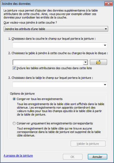 Figure 3. L’interface de création des jointures dans ArcMap.