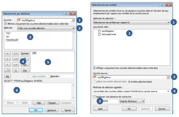 Figure 4. Les sélections attributaires et spatiales dans ArcMap.