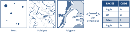 - Après la création de chaque polygone renseignez la nature du sédiment associée dans le champ “sédiment” de la table attributaire.