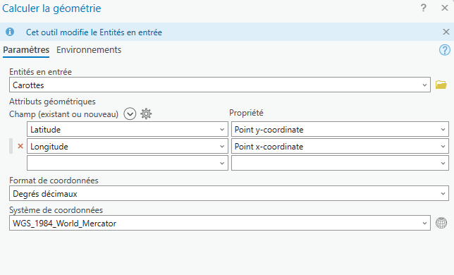 - Cliquez avec le bouton droit sur l’en-tête du champ “Latitude” et sélectionnez “Calculer la géométrie”.