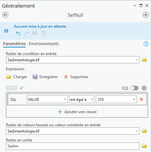 A partir du raster Sedimentologie.tif, nous allons commencer par supprimer le fond avec la fonction Setnull.