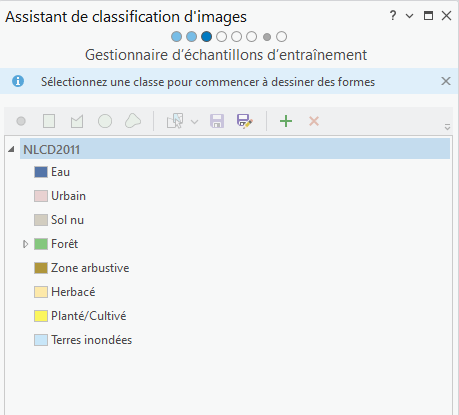 Pour chaque classe nous allons maintenant créer des échantillons d'entraînement. Pour chaque classe réalisez des échantillons de tailles différentes et répartis sur tout le raster.