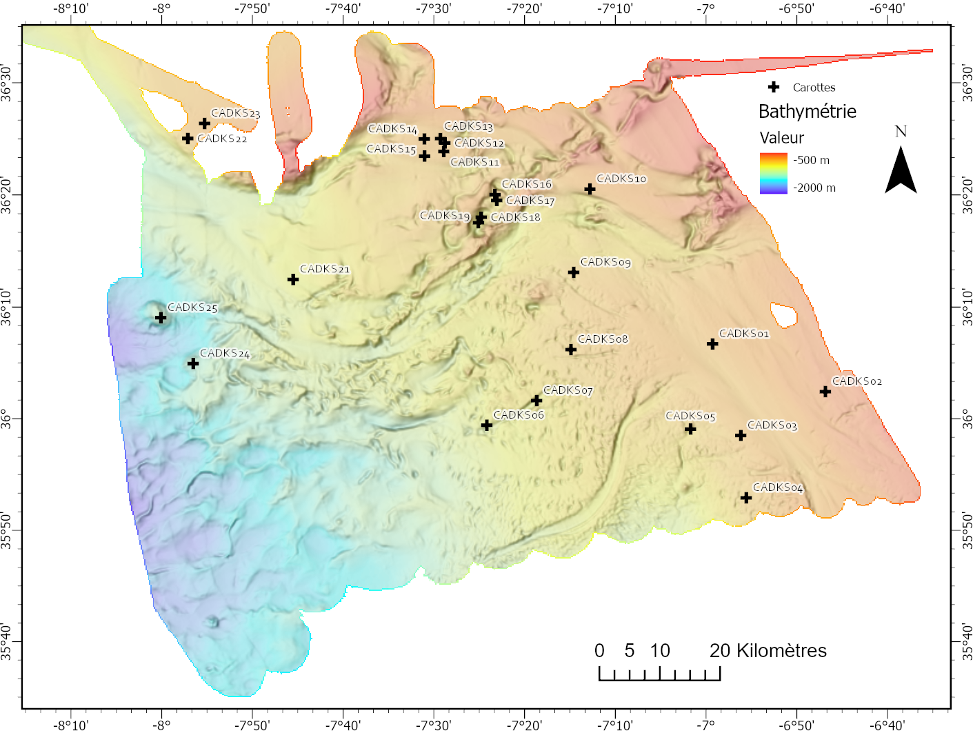 L'objectif de la séance est de réaliser une carte sédimentologique dans le détroit de Gibraltar. Vous allez apprendre à utiliser les outils d'éditions, de dessin ainsi que la gestion de la table attributaire et la symbologie.