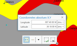 - Dans Créer des entités avec l'Outil point rajouter une nouvelle carotte à partir des coordonnées suivantes : 36°18’00’’N / 7°40’00’’W (clic droit - X, Y, Z absolu)dans la fenêtre de visualisation).