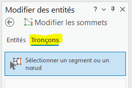 Une fois la topologie activée vous devez sélectionner l'onglet Tronçons de l'outil Modifier les sommets