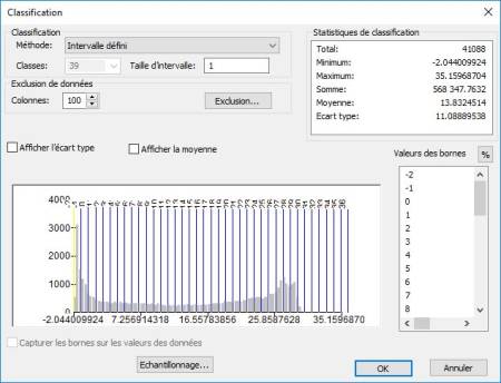 Pour les salinités la majorité des valeurs est compris entre 28 et 38 psu. Afin d'observer les variations entre ces intervalles essayez la méthode de classification Seuils naturels avec 32 classes.