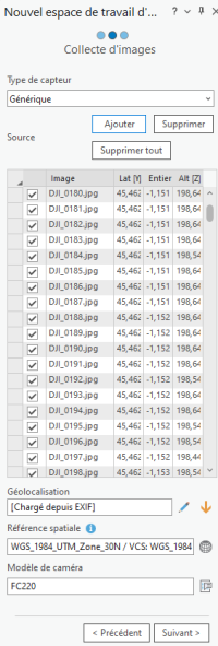 - Ajoutez les images en sélectionnant le répertoire qui les contient. Toutes les informations nécessaires suivantes étant stockées dans les images, refaites « Suivant ».