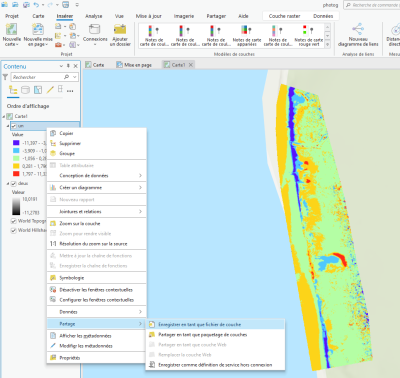 A partir de ces trois dates et de vos connaissances sur ArcGIS, vous pouvez maintenant réaliser une carte (de votre choix) qui permettra de mettre en évidence les variations du trait de côte au cours de ces trois années et de discuter des paramètres qui influencent les variations (végétation etc..). Vous pouvez également vous aider des orthomosaïques et des MNT.