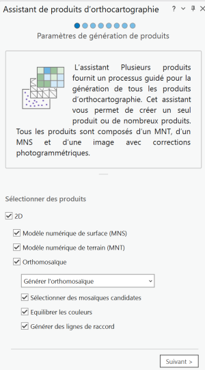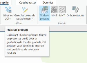 Vous pouvez les créer séparément, mais le plus simple est d'utiliser le traitement “Plusieurs outils” qui va générer le MNS, le MNT et l'Orthomosaïque en une seule fois.