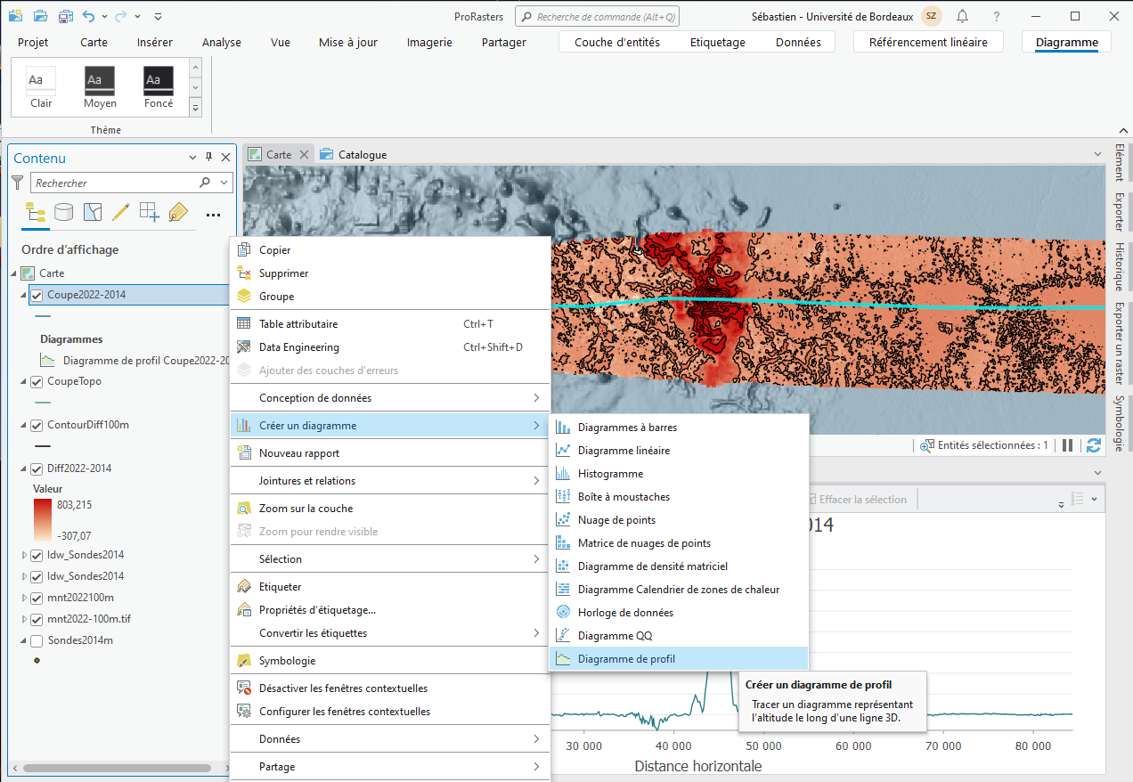 Le diagramme de profil peut alors être crée et visualisé.