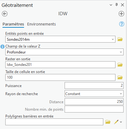Effectuez le maillage des sondes bathymétriques en raster avec le géotraitement - IDW.