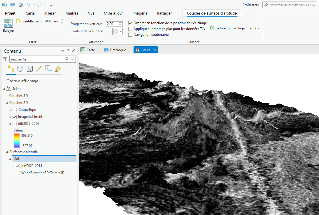 La surface d'altitude sert de base altimétrique pour la visualisation de toutes les autres couches.