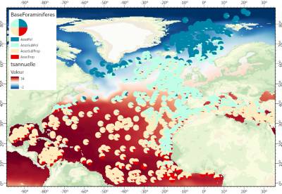 Le fichier Excel BaseForams.xlsx contient la base de données foraminifères planctoniques des sédiments de surface de l'hémisphère nord. La feuille *BaseForams contient les comptages et la feuille LocalisationEchantillons contient la localisation des prélèvements.